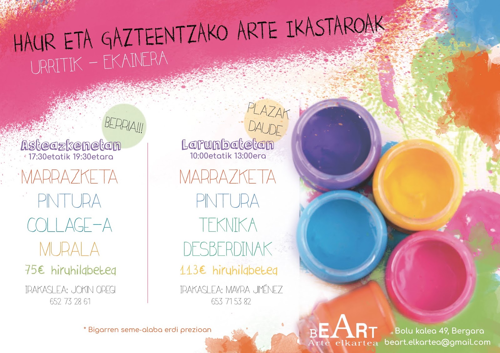 BEARTen arte ikastaroak dauzkagu artista txikientzat!!!