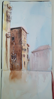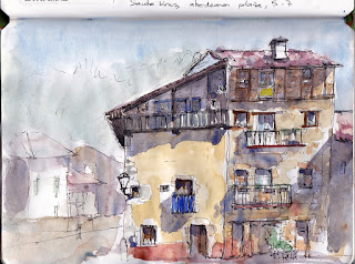 Más tarde, aprovechando que no llovía, pude dibujar el palacio Isasi (Markeskua) y su entorno.