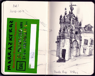 Dibuje a los cabezudos en la plaza y no los "visitamos" en su descanso. Pero pudimos acceder al patio de las monjas de las monjas de la caridad para dibujar en su descanos a los cabezudos, kilikis y zaldikos.
