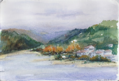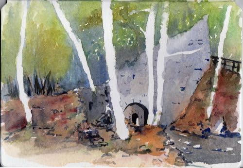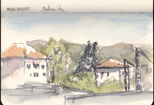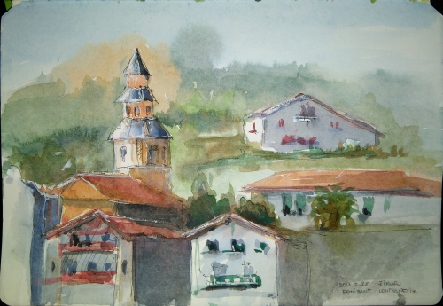 Más tarde, aprovechando que no llovía, pude dibujar el palacio Isasi (Markeskua) y su entorno.
