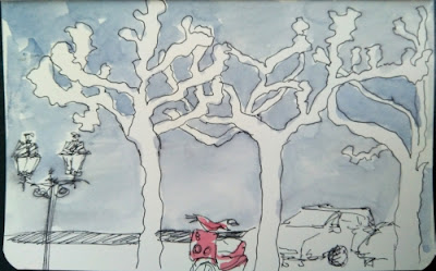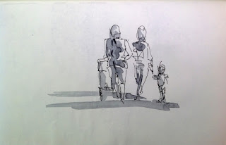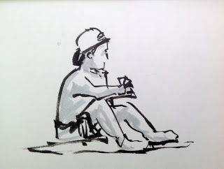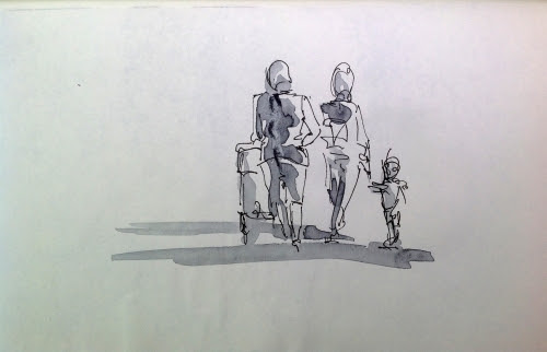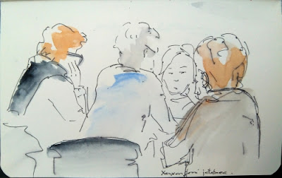 La previsión meteorológica no nos amilanó y estuvimos en Eibar celebrando un nuevo sketchcrawl.El museo de la Industria Armera y todos l@s nuev@s amig@s que hicimos en Eibar fueron excelentes anfitriones. Gracias a tod@s!Goizean, euriaren babesaren bila ibili ginen eta taldetxo bat Untzaga plazako arkupetan dagoen terraza batean jarri ginen .Hantxe egin nuen nik neure lehenengo marrazkia.